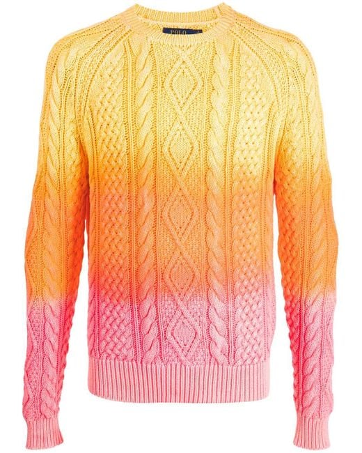 Polo Ralph Lauren Gradient Effect Cable Knit Jumper In Orange For Men Lyst